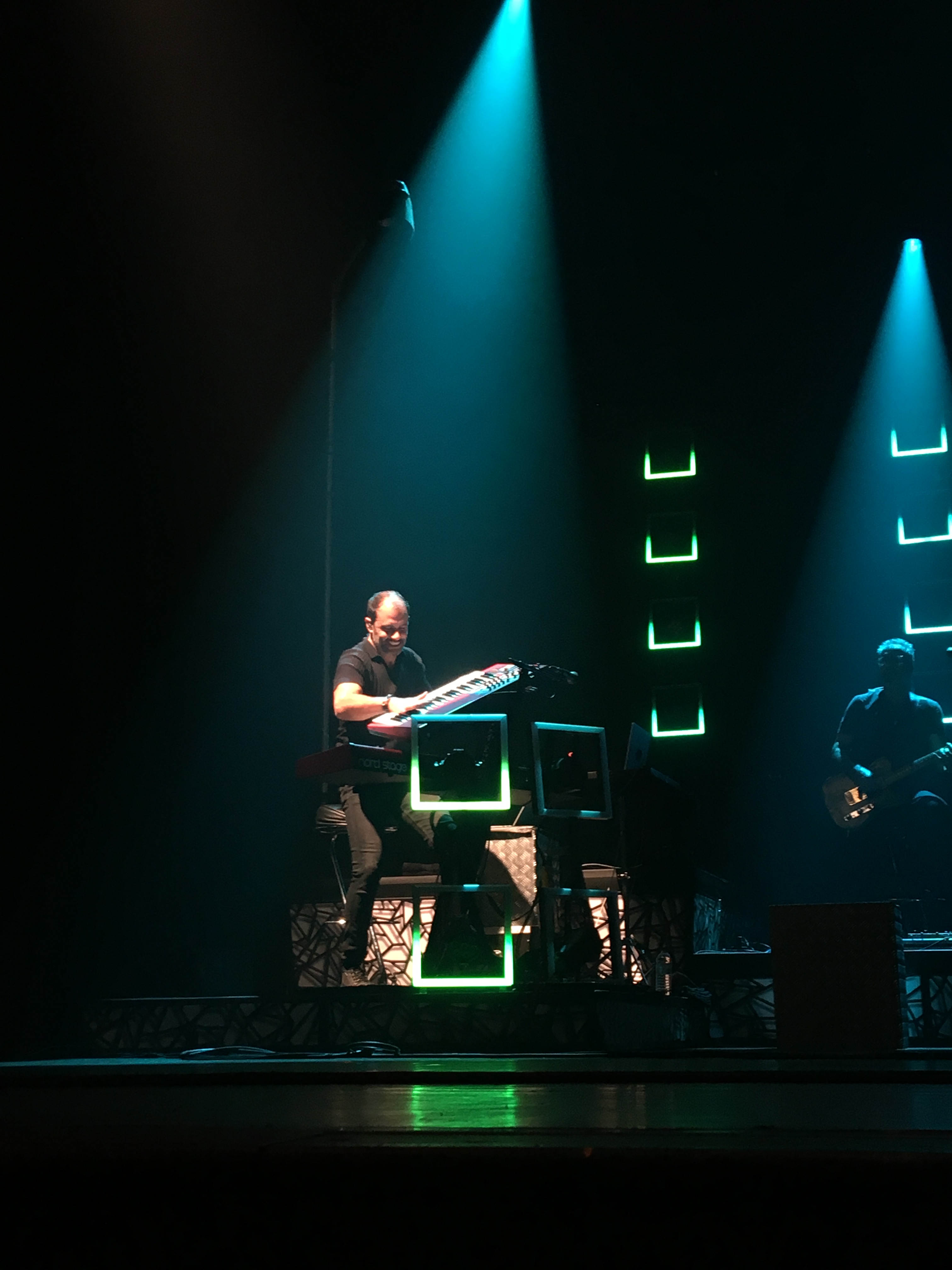 Directeur musical de cette tournée, Idriss El Mehdi est principalement aux claviers. Lui aussi, touche à plusieurs instruments car sur ce concert, nous pouvons le retrouver à la guitare électrique, aux choeurs mais également au guembri. Ce musicien sublime les chansons avec des arrangements incroyablement bien pensés. Idriss El Mehdi fournit un travail minutieux pour un résultat sublime. Il nous fait voyager tantôt au travers d’un piano-voix hors du temps, tantôt pour travailler notre déhanché au son de son guembri et ses mélodies orientales. Une belle complémentarité lorsque tous les sons se mêlent. Merci pour le voyage !